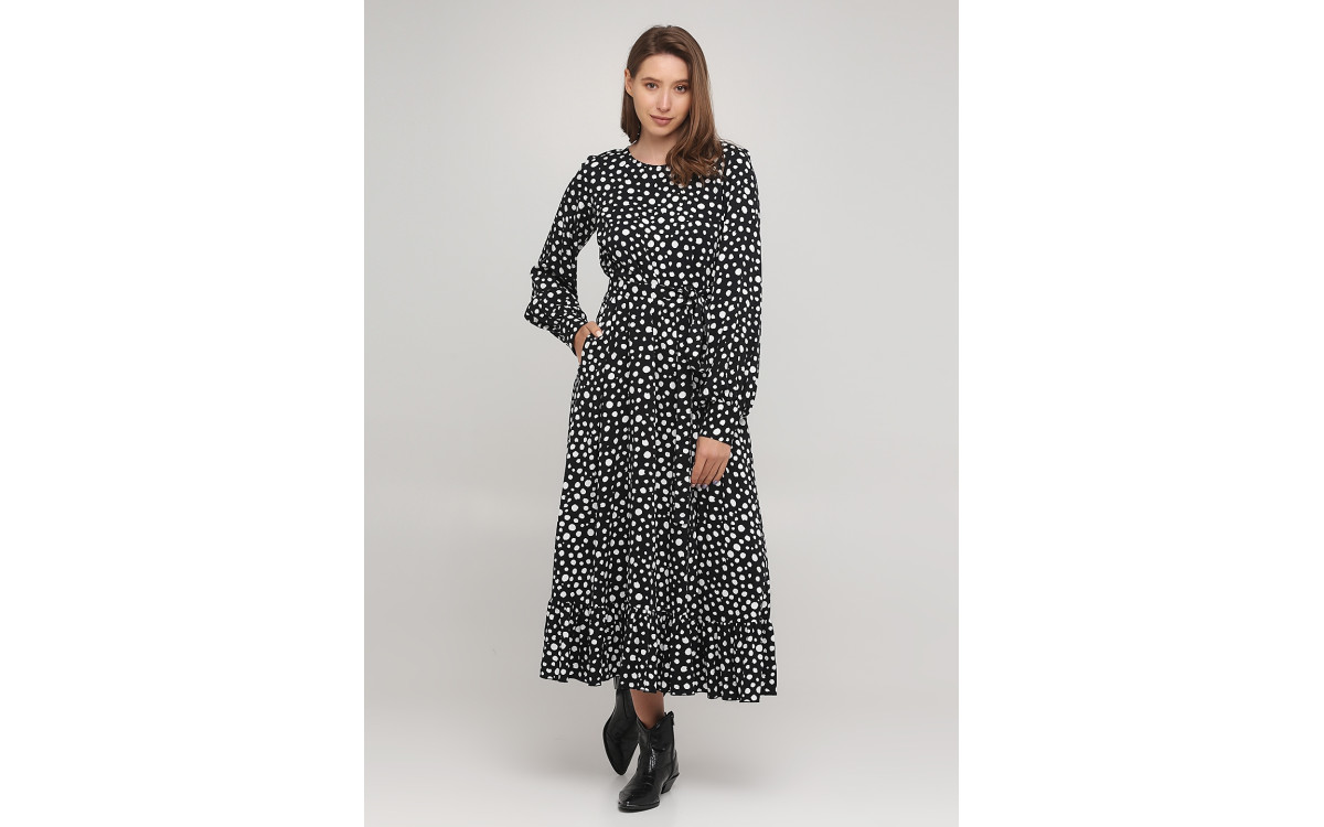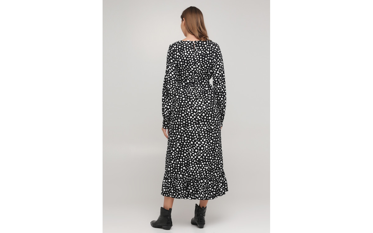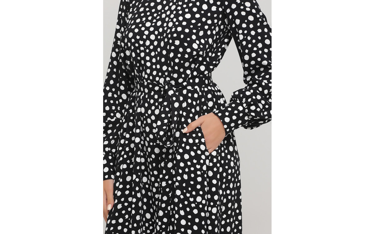 Чорна сукня міді в горох на поясі