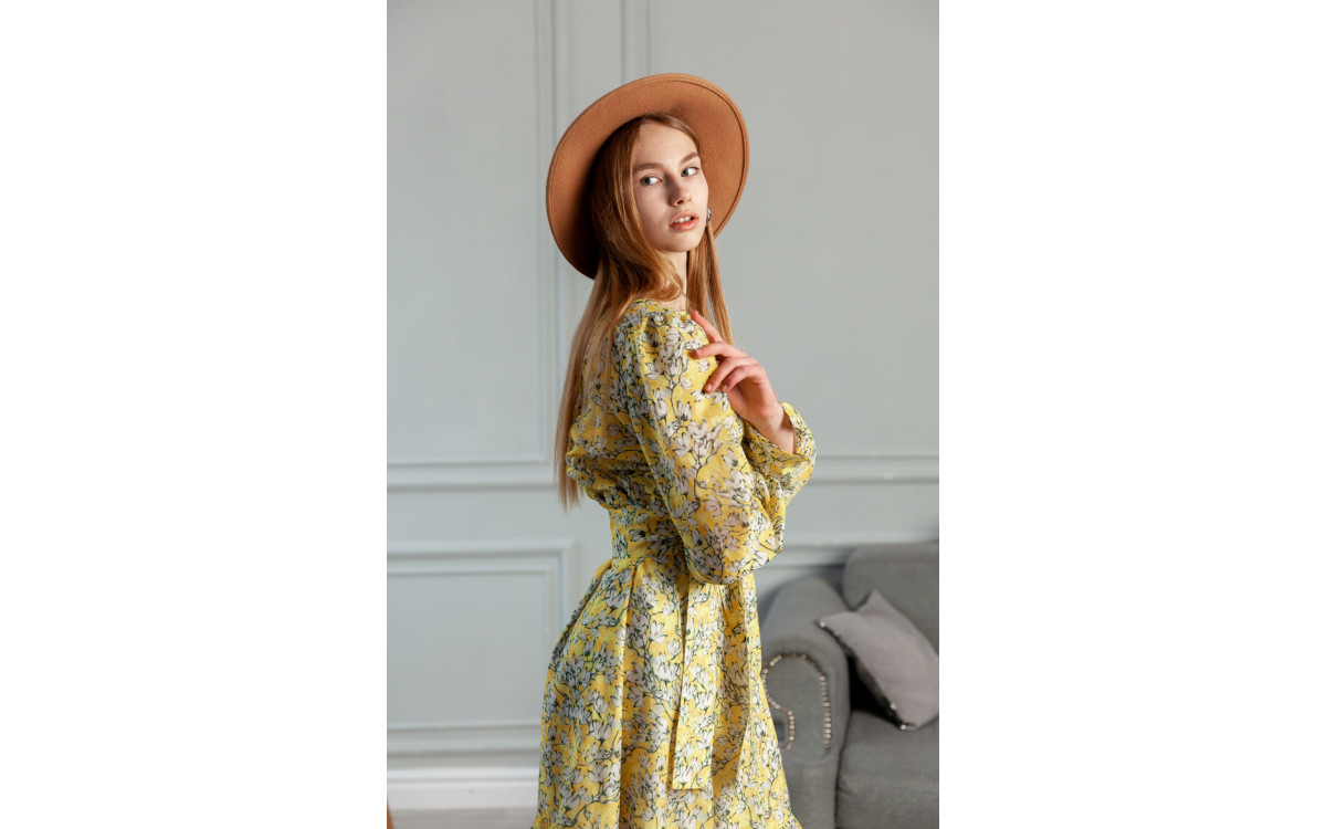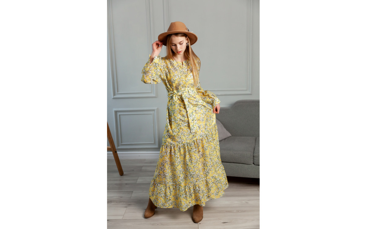 Довге жовте плаття в принт 77-406-781